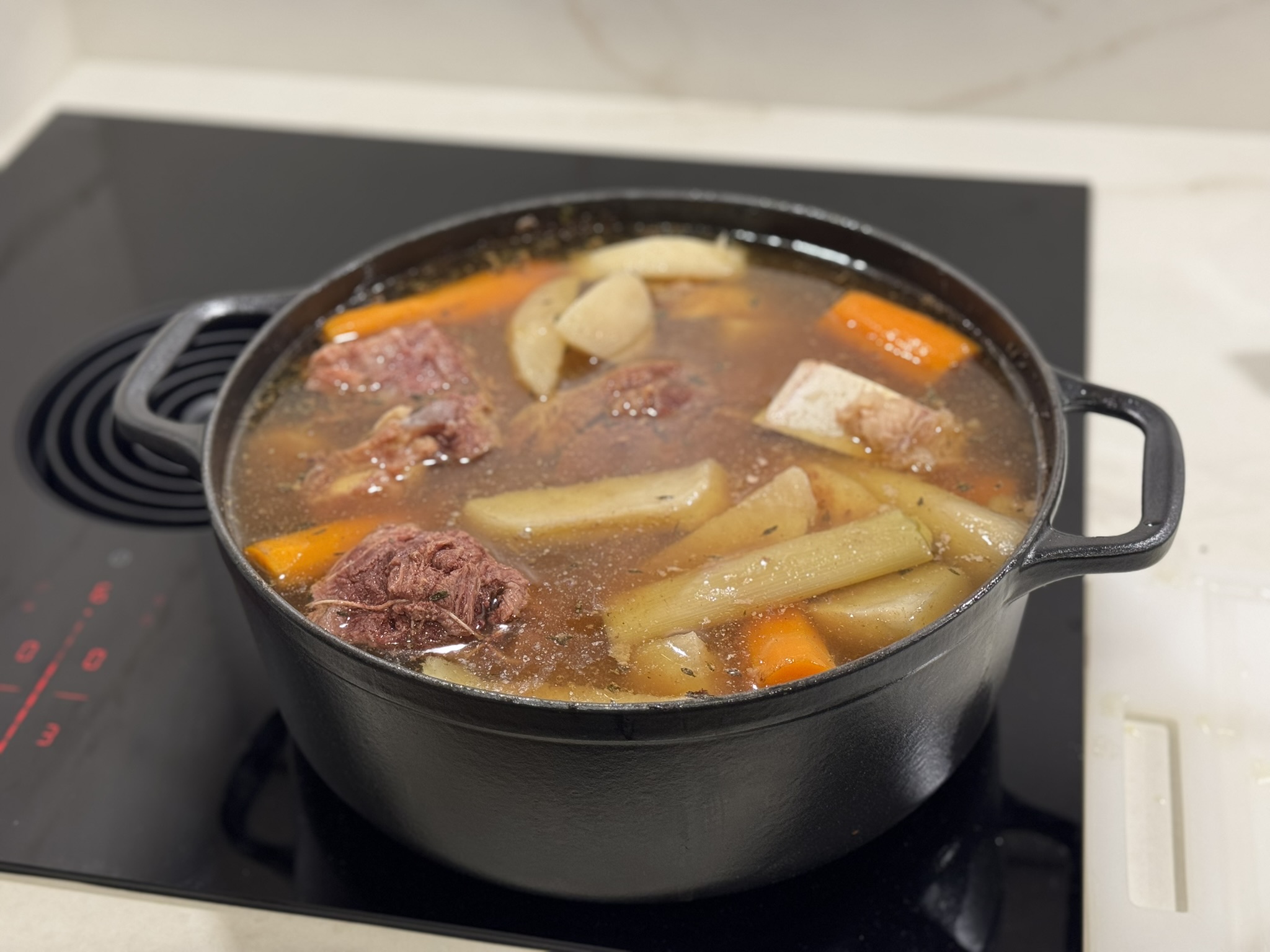Un pot-au-feu n’est jamais trop cuit ! Comptez un minimum de 3h de cuisson pour la viande, et si vous le faites la veille pour le lendemain, c’est encore meilleur réchauffé...